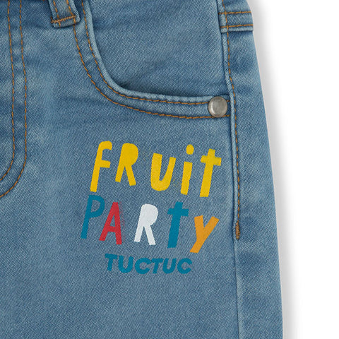 Pantaloncino in Jeans della Linea Abbigliamento Bambino Tuc Tuc, collezione Fruitty Time, con risvolti sul fondo e misura regolabile in vita.