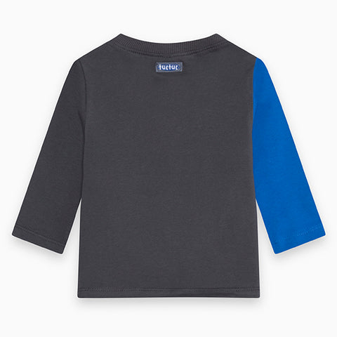 T-shirt della Linea Abbigliamento Bambino Tuc Tuc con disegno multicolor sul davanti e bottoncini a pressione sulle spalline.