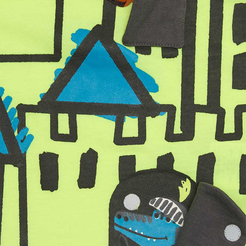 Maglietta della Linea Abbigliamento Bambino Tuc tuc, con stampa colorata sul davanti su fondo fluo.