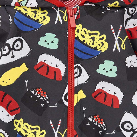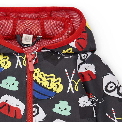 Giubbotto antivento della Linea Abbigliamento bambino Tuc Tuc, con cappuccio e retina all'interno. Bellissima fantasia all-over e taschine sul davanti.