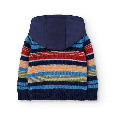 Cardigan della Linea Abbigliamento Bambino Boboli, con cappuccio estraibile, fantasia a righe multicolor e chiusura zip.