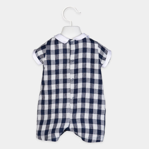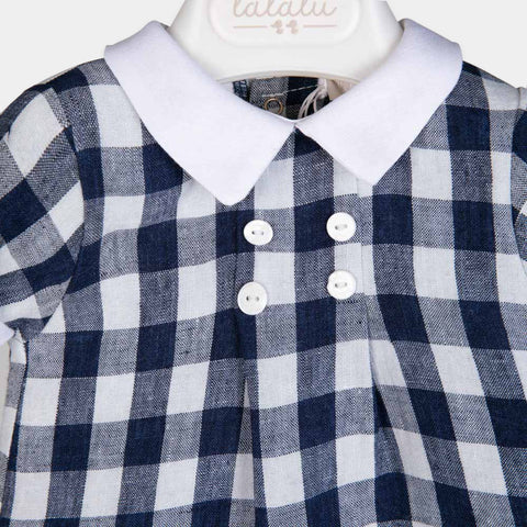 Pagliaccetto della linea Abbigliamento Bambino Lalalù, con colletto a camicia e bottoncini applicati sul davanti.