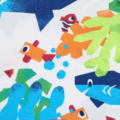 Maglietta della Linea Abbigliamento Bambino Tuc Tuc, con bottoncini a pressione sulla spallina e bellissima stampa multicolor sul davanti.