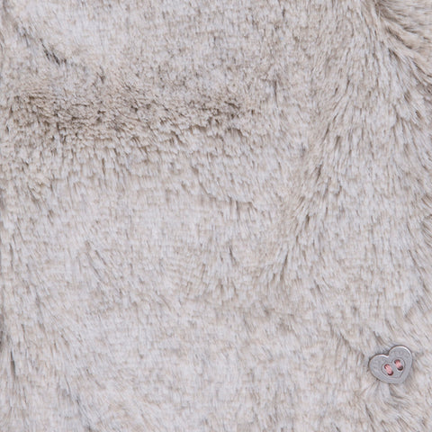 Giacchia della Linea Abbigliamento Bambina Tuc Tuc in finta pelliccia chiusa sul davanti con zip e con elastici a righe sulle finiture.