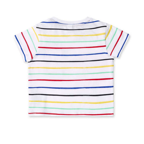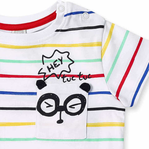 T-shirt della Linea Abbigliamento bambino Tuc Tuc, con fantasia a righe multicolor e taschino sul davanti.