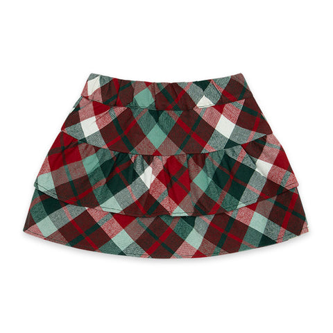 Gonna a doppia balza, della linea abbigliamento bambina Tuc Tuc, collezione Highlands, con fantasia tartan e quattro bottoncini sul davati.
