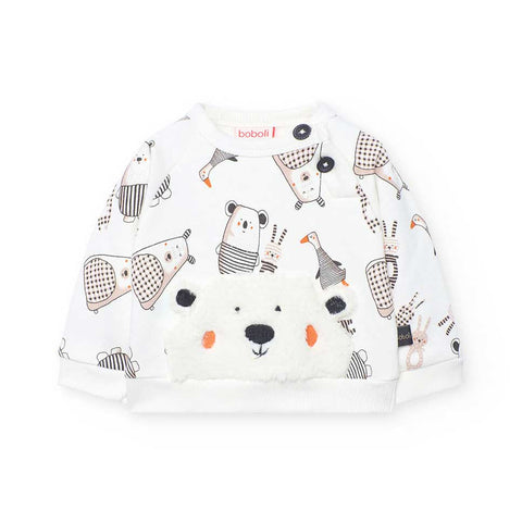 Completo due pezzi della Linea Abbigliamento Bambino Boboli, con pantalone morbido a tinta unita e felpina a fantasia con orsacchiotti.