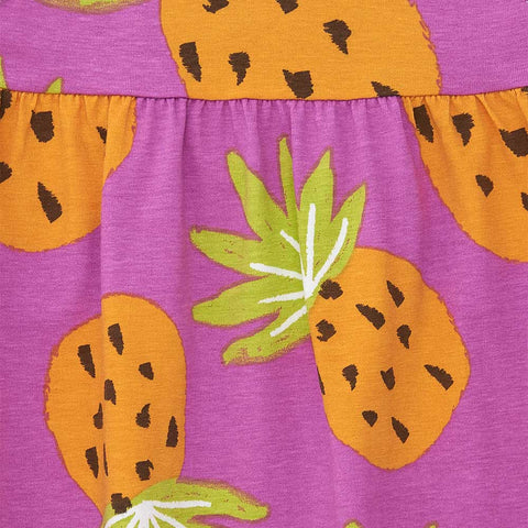 Abitino della Linea Abbigliamento Tuc Tuc Bambina, modello prendisole con scollo profondo sul dietro e bellissima fantasia di ananas.