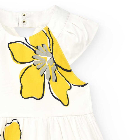 Abitino Linea Abbigliamento Bambina Tuc Tuc, con taglio in vita e ampia scollatura sul dietro. Sul davanti bella stampa floreale in contrasto di colore.