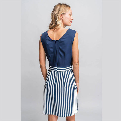 Abito della Linea Abbigliamento Donna Rosalita Mc Gee, con parte inferiore a righe, e parte supe...