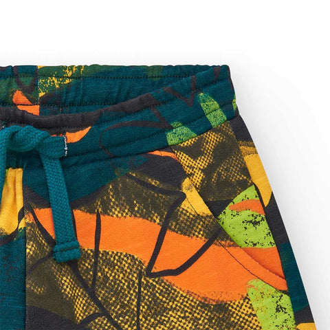 Bermuda della Linea Abbigliamento BambinoNath Kids, con fantasia tipo mimetico con colori fluo.