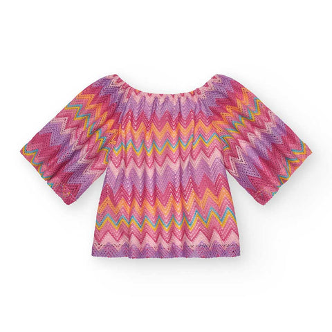 Maglietta della Linea Abbigliamento Bambina Nath Kids con modello ampio e corto. Spalline morbide e fantasia geometrica a tinte vivaci.