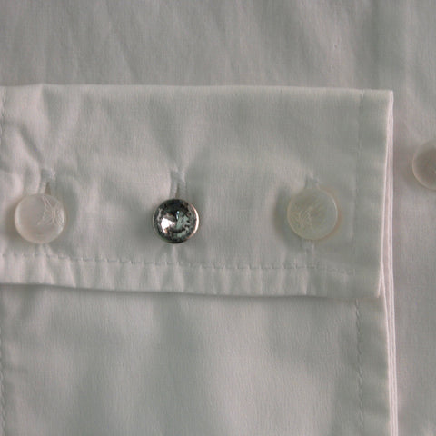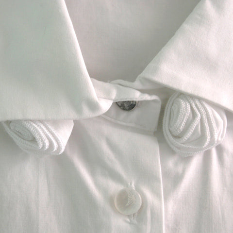 Camicia della linea abbigliamento bambina Mirtillo. Tinta unita con roselline applicate in tessuto sullo scollo.