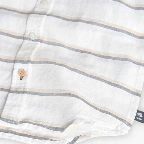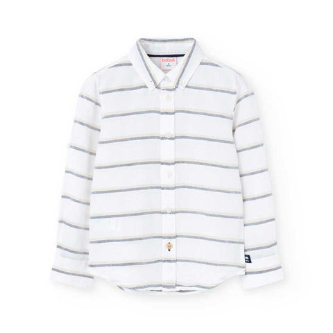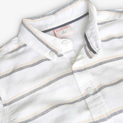 Camicia in lino a amanica lunga con passante per fermarla. Fantasia a righe e colletto botton down.