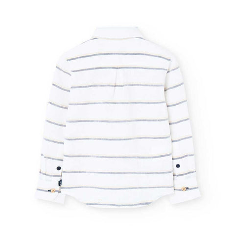 Camicia in lino a amanica lunga con passante per fermarla. Fantasia a righe e colletto botton dow...