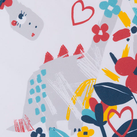 Costume intero della Linea Abbigliamento Bambina Tuc Tuc con stampa multicolor di dinosauro e voillant sulle bretelline.