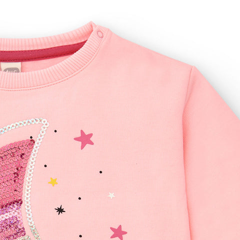 Felpa della Linea Abbigliamento Bambina Tuc Tuc, con applicazione di paillettes sul davanti.