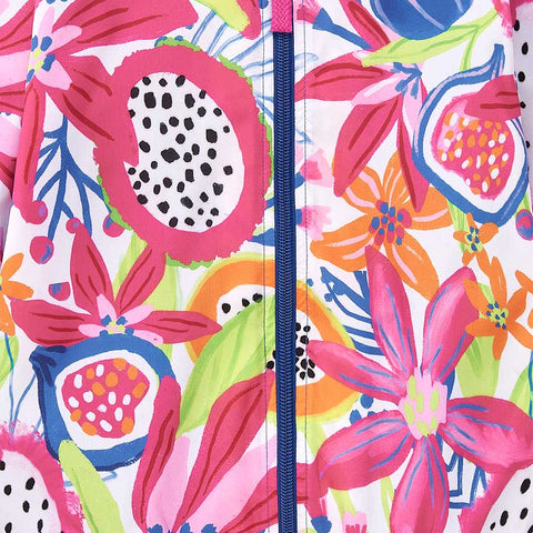 Giubbotto antivento della Linea Abbigliamento Bambina Tuc Tuc, con cappuccio, chiusura zip e fantasia floreale all-over.