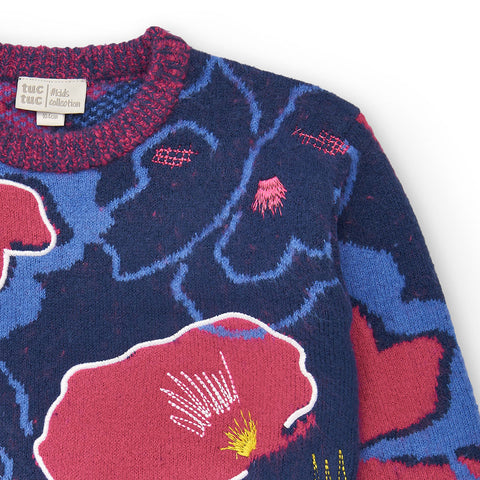 Maglione della Linea Abbigliamento Bambina Tuc Tuc, a trama doppia e con fantasia floreale.