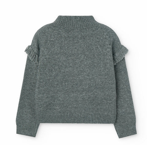 Maglione della Linea Abbigliamento Bambina Boboli, modello corto con mezzo collo e lavorazione a trecce.