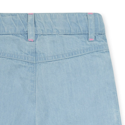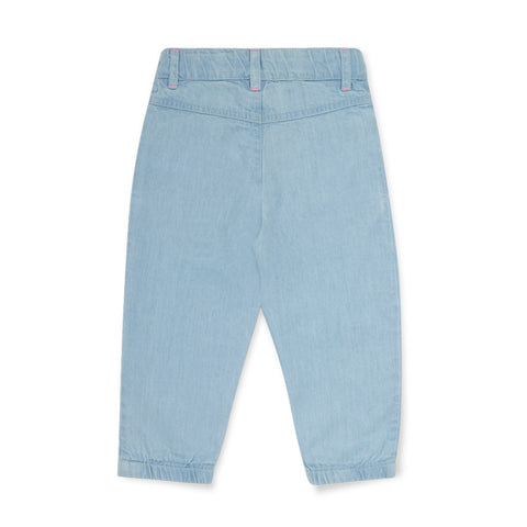 Pantalone jeans della Linea Abbigliamento Bambina Tuc Tuc, con elastico in vita e lavaggio chiaro.