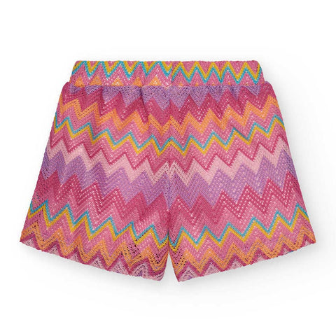 Shorts della Linea Abbigliamento Bambina Nath Kids, con elastico in vita, in tessuto morbido e fantasia geometrica.