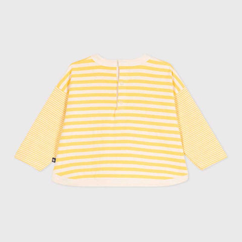 T-shirt  della Linea Abbigliamento Bambino Petit Bateau in tubique, un materiale soffice e comodo con scritta ricamata sul petto. Adorabile ricamo a contrasto sul petto. Il tubique è uno dei materiali iconici proposti da Petit Bateau: due maglie estremamente soffici unite insieme per una morbidezza unica. Facile da indossare grazie all'apertura con bottoni sulla schiena.