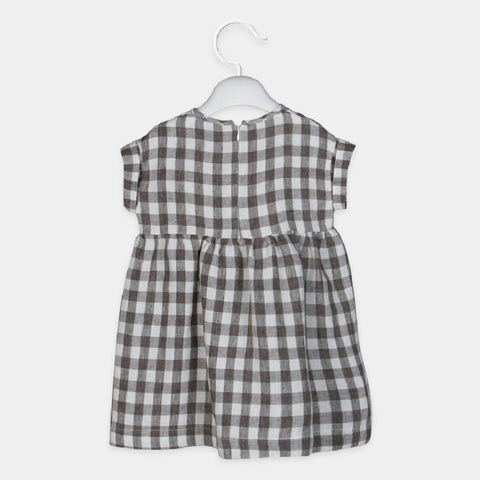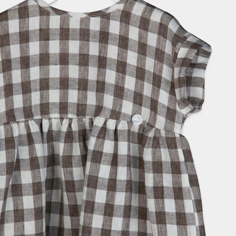 Vestito in lino della Linea Abbigliamento Bambina Lalalù, con fantasia a qudri e taglio largo.