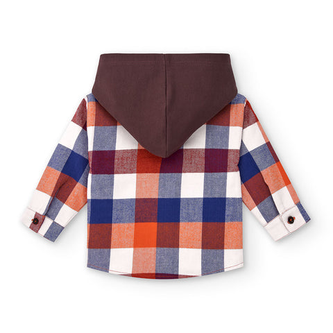 Flanellhemd aus der Tuc Tuc Kinderbekleidungslinie, mit Karomuster in warmen Tönen und einfarbiger Baumwollkapuze.