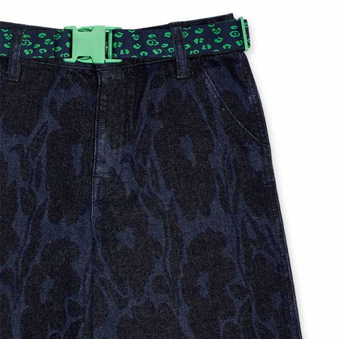 Jeanshose aus der Kinderbekleidungslinie tuc tuc, mit Ton-in-Ton-Tiermuster.