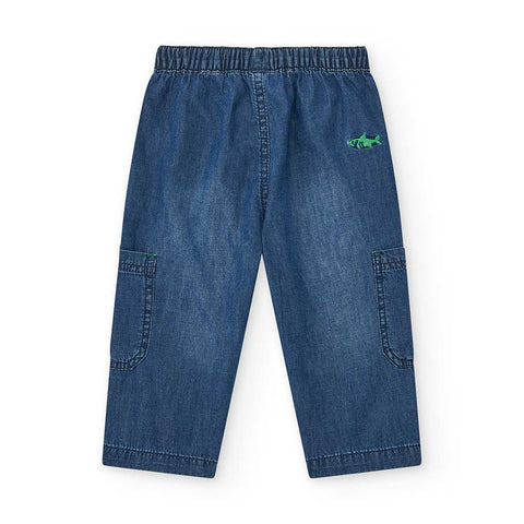Pantalone jeans della Linea Abbigliamento Bambino Tuc Tuc, con tasche laterali e laccetto in vita.
