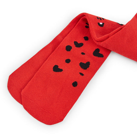 Ein Paar Strumpfhosen aus der Tuc Tuc Girls' Clothing Line, eine einfarbig, die andere mit einem Muster aus kleinen Herzen.
