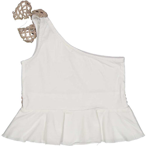Top der Marke Trybeyond für Mädchen, mit asymmetrischem Modell und Garnverarbeitung auf der Vorderseite.