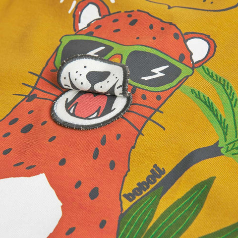 T-Shirt aus der Boboli Kinderbekleidungslinie, mit buntem Aufdruck auf der Vorderseite und Stoffspiel-Applikation.